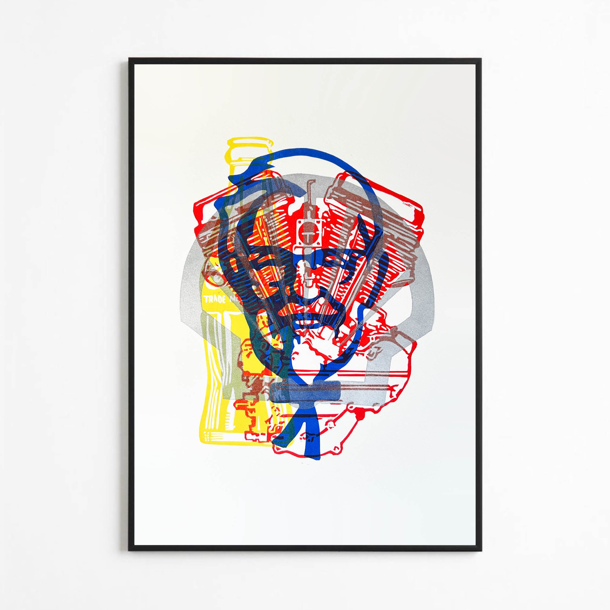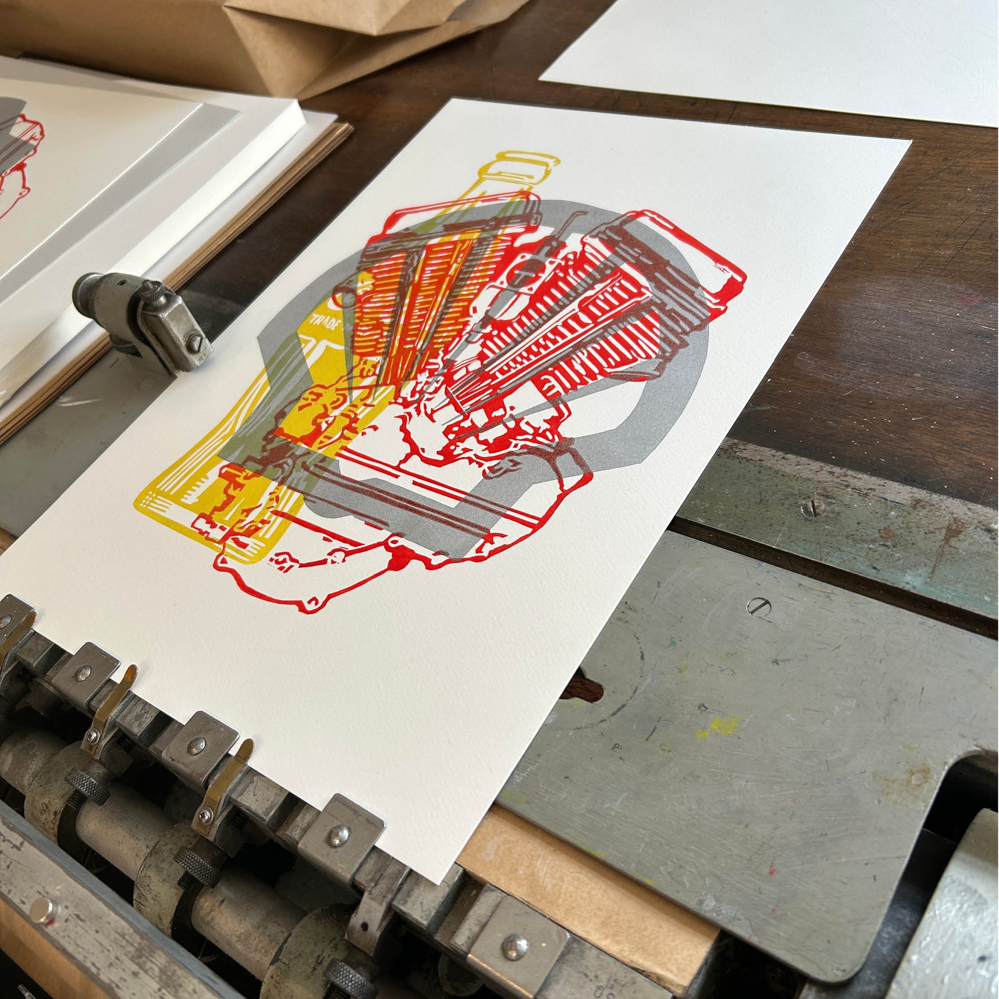 Four colour relief print - composed, inked and printed by hand on a Soldan cylinder proofing press. Produced in a limited edition of only five copies.